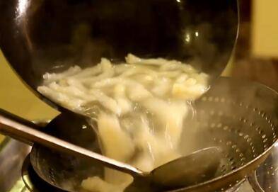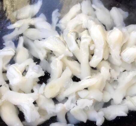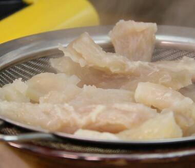 2、蹄筋在开水中焯一下去掉油脂和杂质。