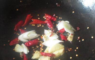 3、锅中放油,下蒜片、姜块煸炒香味。