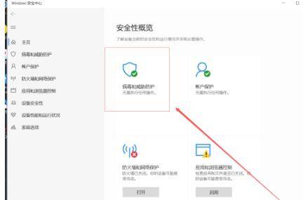 在安全中心的页面中,可以看到第一个选项就是杀毒软件。