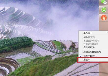 以win10为例:在桌面上对着任务栏击右键,选择“属性”菜单选项。