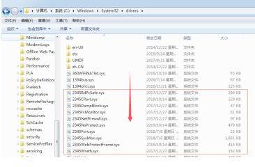 点击鼠标左键计算机,如下图(点击鼠标左键系统C盘,点击鼠标左键Windows,点击鼠标左键system32,点击鼠标左键drivers)看到2345文件。