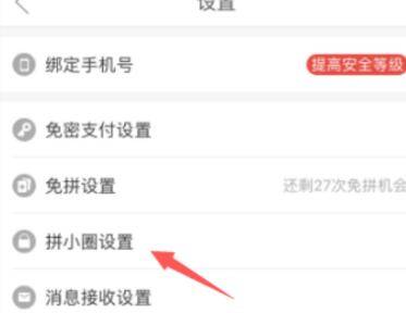 4、在列表项中点选“拼小圈设置”。