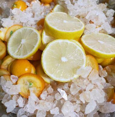 用料:金桔1000克、新鲜柠檬一个、糖300克、清水150毫升、食盐2勺。