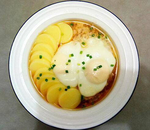 打入鸡蛋和豆腐后放入蒸锅,大火上汽后,改中火蒸10分钟左右即可。