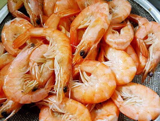 1、处理虾。剪去虾须,剔除虾线,放热水里焯一下,过凉水后滤干水分待用。