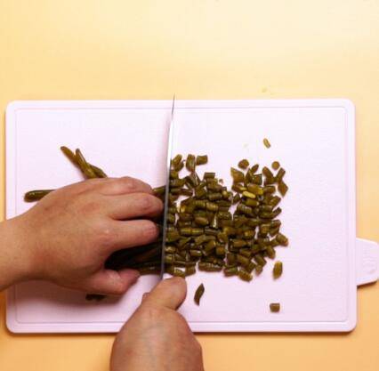 酸豆角切碎。