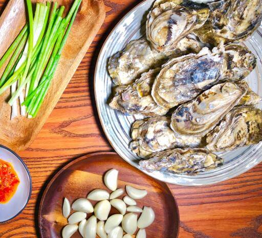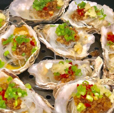 生蚝(牡蛎)5斤、大蒜3头、葱花三根、粉丝1捆、盐适量、生抽适量、辣椒酱适量、香油适量、糖少许。