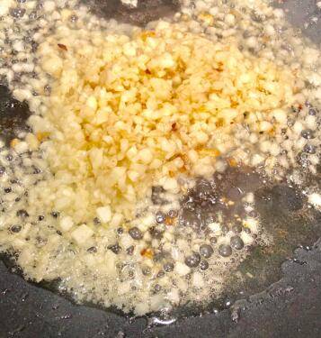将蒜全部剁成碎末,锅中放油,中火烧至五成热,调制中小火放入蒜蓉,炒至变成金黄色连锅底油一起盛出。