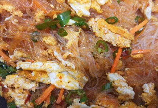 放入粉丝、胡萝卜,翻炒一下。放入蚝油、酱油、十三香、盐等。