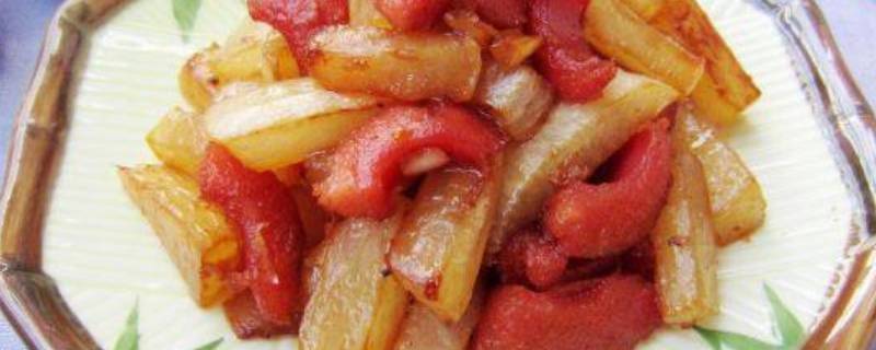 5、把萝卜条下锅小火煸炒。