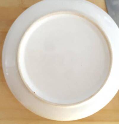 煎好的面皮可以找个大小差不多的盘子扣上,裁掉多余的边。然后放进冰箱冷藏半个小时。冷藏面皮的时间可以把芒果切块。打发奶油。400克的奶油加入45克糖打发。