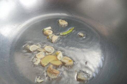 6、起油锅,葱姜蒜入锅炒。