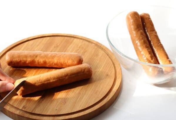 1、黑胡椒味香肠,在香肠表面轻划几刀,可有效防止香肠爆开。