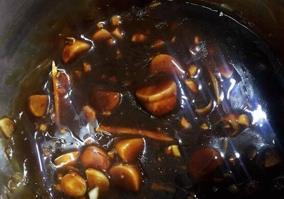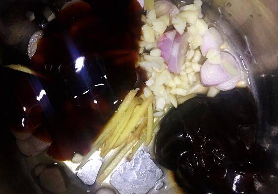 用料:鸡腿6个、柱侯酱2大勺、蚝油1勺、干葱5头、蒜头4瓣、姜2片、料酒1勺、色拉油1勺。