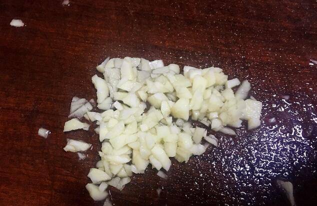 2、蒜头去皮洗干净剁碎。