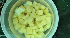 鸡腿肉切丁,放入适盐、白糖、玉米淀粉、料酒,酱油腌制15分钟