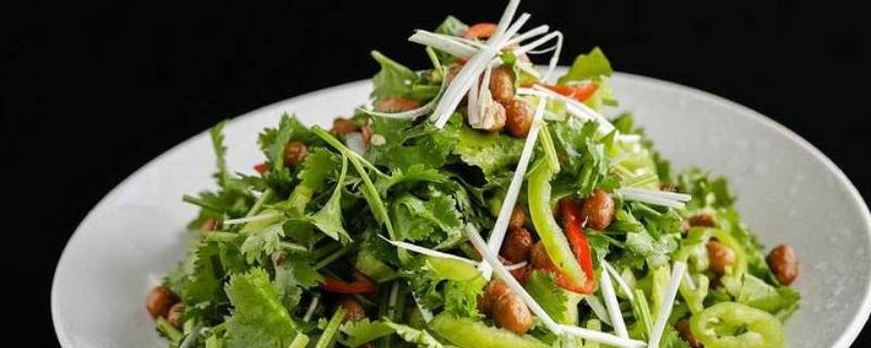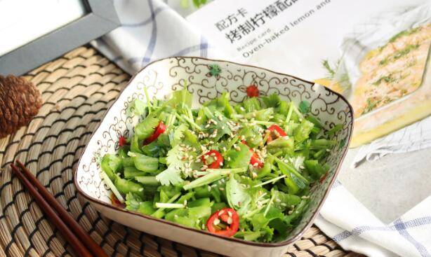 用料:青椒一个、香菜四五棵、杭椒一根、醋少许、生抽一汤匙、白糖少许、香油少许。