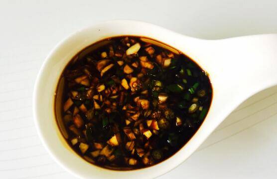 7、蒸蟹的同时调醮汁,用生抽、香醋、姜蒜末、糖。