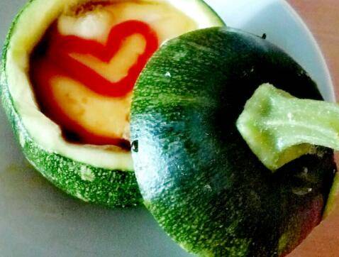 小南瓜一只,从1/4的地方切开,去瓤,可以留下瓤炒别的菜用。