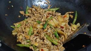 用料:肉丝250g、嫩姜2个、青椒3个、大蒜2瓣、郫县豆瓣1勺、蒸鱼豉油1勺、生抽2勺、花椒油半勺、胡椒粉适量、淀粉适量、盐适量。