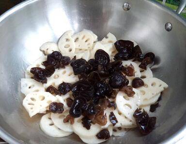 主料:莲藕300克。辅料:油10毫升、盐2克、白糖5克、芝麻油3毫升、木耳6克、胡萝卜15克、青椒10克、葱姜5克。
