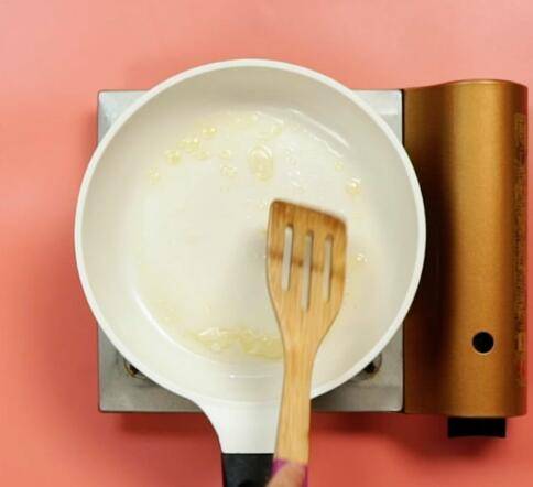 锅中加入油后,放入冰糖,小火炒制糖浆。