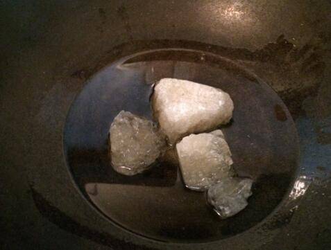 8、锅烧热加油和冰糖炒糖色。
