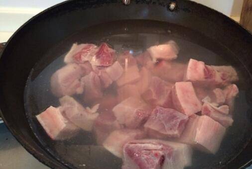 7、五花肉洗净,焯水。