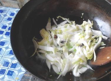 锅中放入底油,加入切好的葱花辣椒段爆香;