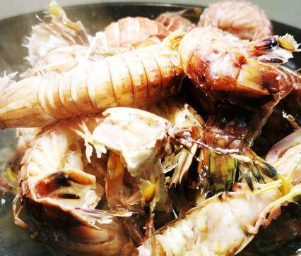 锅里放油烧热,把姜片烧几十秒,倒入濑尿虾,放料酒翻炒几下,盖上锅盖,中途不定时开盖翻炒。