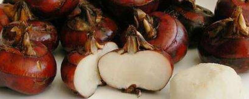 荸荠按球茎所含淀粉量,可分为两种类型:一种为水马蹄类型,球茎顶芽尖,脐平,富含淀粉,肉质粗,适于熟食或提取淀粉用,如苏荠及高邮荸荠等。另一种为红马蹄类型:球茎顶芽钝,脐凹,含水分多,淀粉较少,肉质甜而细嫩,桂林马蹄等。