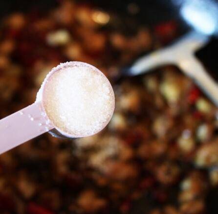 然后加入白芝麻,最后加一小勺白糖,盐调味即可。