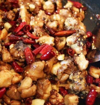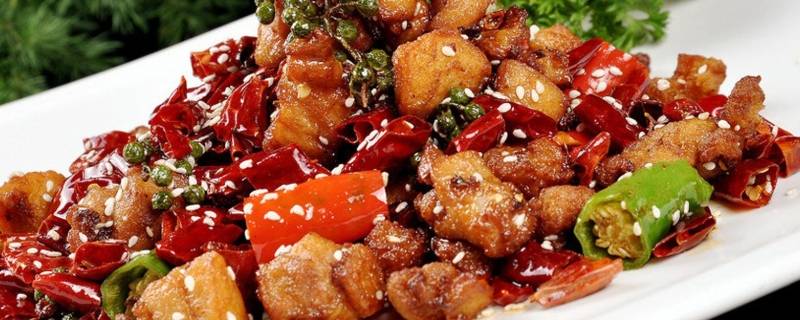 鸡腿肉、干红辣椒、花椒、姜、蒜、白芝麻。