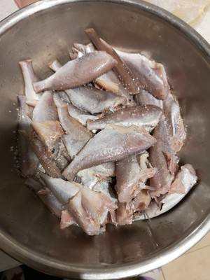 1、鱼去头清洗干净加盐拌均匀。