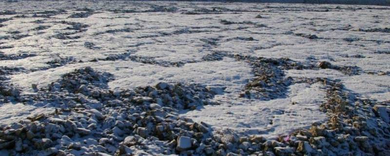 例如,北极的多年冻土厚达千米以上,年平均低温为-15℃。永冻层的顶面接近地面。向南,趋近连续冻土的南界,多年冻土厚度减到100m以下,低温为-5~-3℃,永冻层的顶面埋藏变深。大致北纬48°附近是多年冻土的南界,其处平均低温接近0℃,冻土厚度仅1~2m。超过这一界限,就从连续冻土带过渡到不连续冻土带。后者由许多分散的冻土块体组成,这种分散的冻土块体称为岛状冻土块。