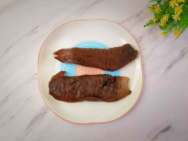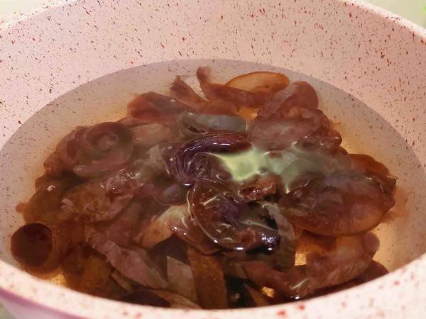 5、放入海参和大葱翻炒,再加入高汤、生抽、料酒、盐、鸡精,焖煮片刻。