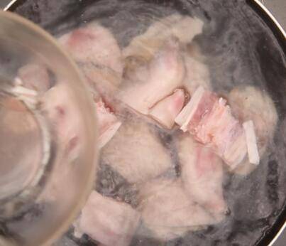 2、取猪蹄800克,焯水去腥味。