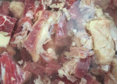 牛腩半斤、萝卜半斤、香菜几根、盐2小勺、姜片3片、辣椒面、孜然、糖、花椒粉、盐适量。