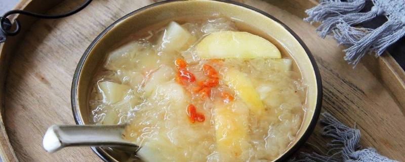 3、增强免疫力:苹果银耳汤中带有丰富多彩的营养元素,如:蛋白、碳水化合物、维他命及其矿物等,常常服用能够协助补充身体所需营养成分,提高人体免疫工作能力。