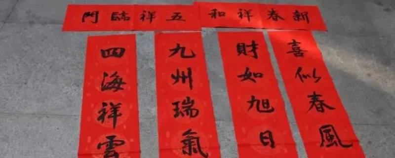 2、上联:一年四季行好运;下联:八方财宝进家门。横批:家和事兴。