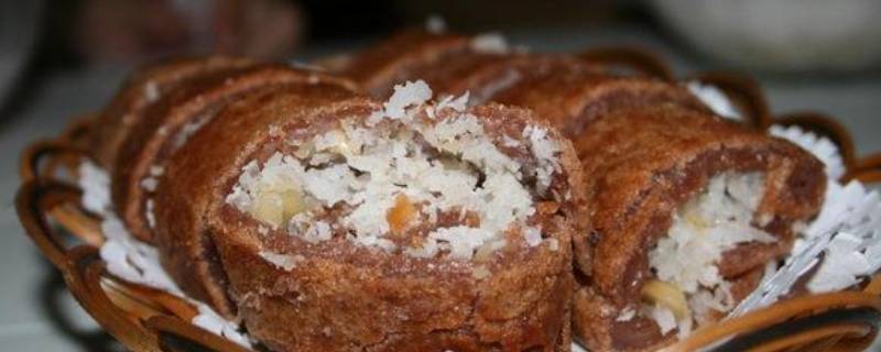 7、椰香高粱粑:椰香高粱粑流行于琼海地区一带,用当地产高梁米配鲜椰子丝蒸熟即成。 高梁米、糯米混和洗净,浸4小时,捞起配清水磨成浆,装入布袋压干,取出搓软成圆形小坯。鲜椰子破开,刨出椰丝,用白糖拌匀待用。将高粱粑坯入蒸笼猛火蒸熟,趁热粘上糖椰丝即成。