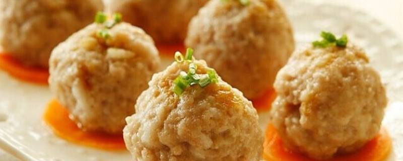 4、山药丸子:山药洗净上锅蒸熟去皮,切小块后,放入保鲜袋中,用擀面杖压成泥,在山药泥中放入盐、胡椒粉、海鲜粉、熟江米粉拌匀,揉成球状,在熟江米粉中滚一下,码盘即可。