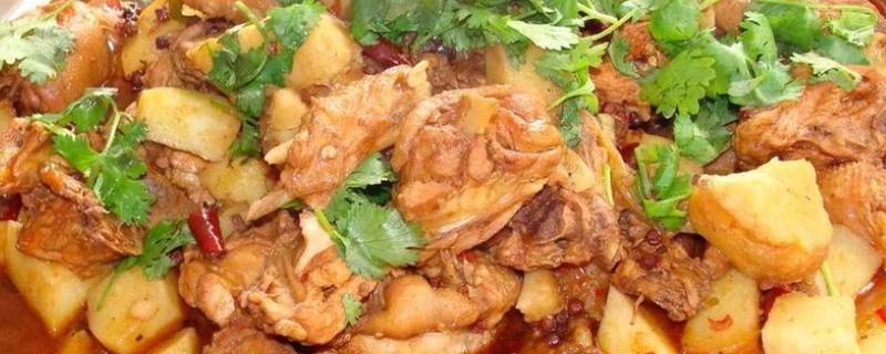 3、大盘鸡:大盘鸡烹制工艺精细,配料选材严格,风味独特,做出的成品色金红油亮,味麻辣醇厚,再加上宽板拉面拌汤汁,食之既可饱肚腹,又能飨口福。