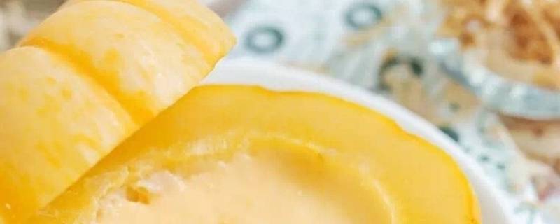 3、把金瓜沿顶部三分之一处切开,再用勺子挖出底部的籽,上锅大火蒸12分钟。