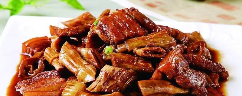 5、放入肉丝翻炒至颜色变白,放入茭白大火翻炒。