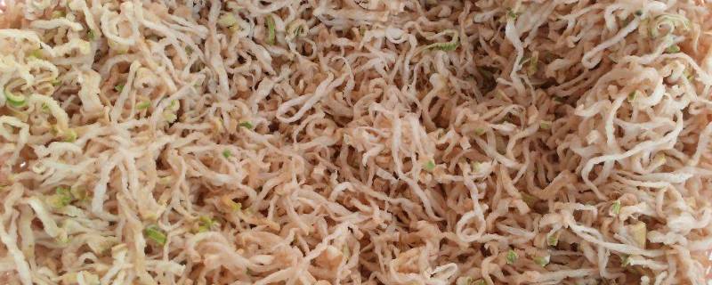 1、萝卜丝用刀切段,用开水将猪脚肉滚熟。