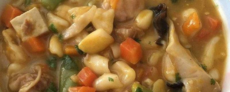 2、三合面:用白面粉、黄豆面粉、小粉面粉按比例拌和而制成。这种面条柔韧光滑、久煮不溶,浇卤滴醋食之,口味鲜美、豆香气浓。