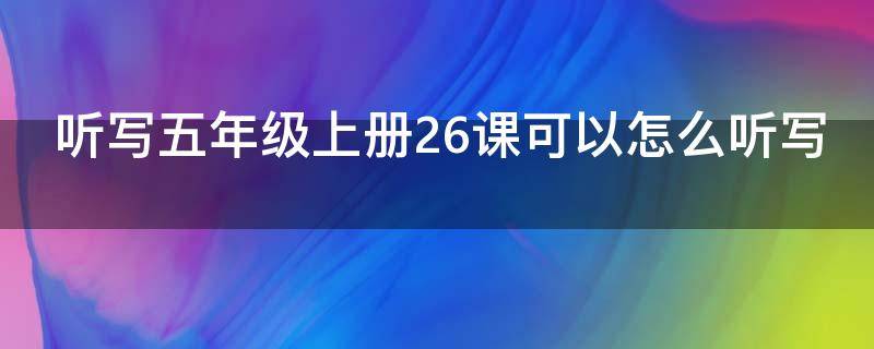 听写五年级上册26课可以听写字词,外加补充字词。听写,是指在学习人类语言时,进行的一种强化记忆的方式。在我们生活中,主要体现在学习汉语和英语中。学习汉语时,我们一边听老师或者同学在旁边念,一边用笔在本子上把自己听到的文字拼写出来;学习英语时,听写主要是教师通过口述或者利用多媒体播放要听写的内容,学生边听边写下听到的内容。听写,又名默书,是一种教学方式,由一个人(通常是老师或者父母来充当这个角色)来读一些词语或句子,由学生(或子女)来写下相对应的文字。