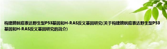 本文关于构建膀胱癌表达野生型P53基因和H-RAS反义基因研究的简介就讲解完毕,希望对大家有所帮助。