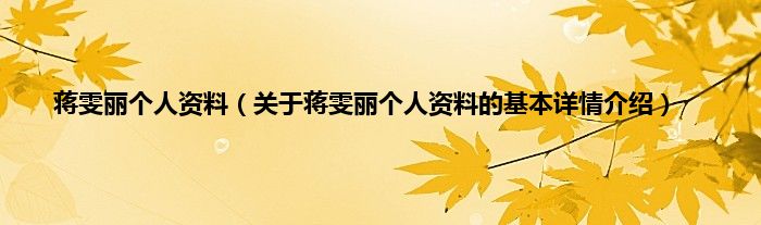 本文关于蒋雯丽个人资料的基本详情介绍就讲解完毕,希望对大家有所帮助。